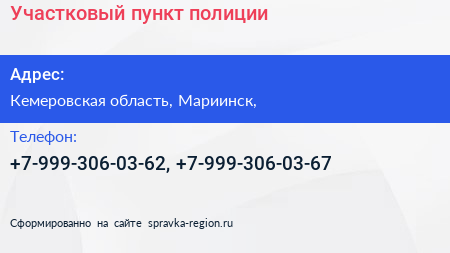 Участковый пункт полиции по адресу Кемеровская область, Мариинск, в дальнейшем Организация, размещена в следующих категориях: