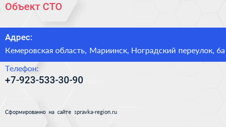 Объект, СТО по адресу Кемеровская область, Мариинск, Ноградский переулок, 6а в дальнейшем Организация, размещена в следующих категориях: