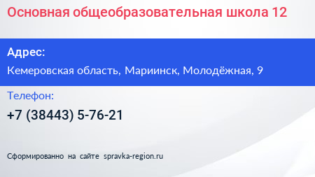 Основная общеобразовательная школа №12 по адресу Кемеровская область, Мариинск, Молодёжная, 9 в дальнейшем Организация, размещена в следующих категориях: