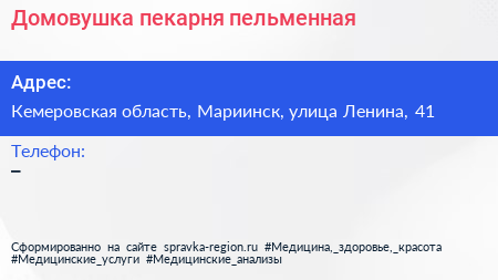 Домовушка, пекарня-пельменная по адресу Кемеровская область, Мариинск, улица Ленина, 41 в дальнейшем Организация, размещена в следующих категориях: