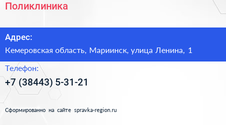 Поликлиника по адресу Кемеровская область, Мариинск, улица Ленина, 1 в дальнейшем Организация, размещена в следующих категориях: