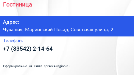 Гостиница по адресу Чувашия, Мариинский Посад, Советская улица, 2 в дальнейшем Организация, размещена в следующих категориях: