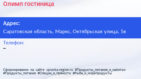 Олимп, гостиница по адресу Саратовская область, Маркс, Октябрьская улица, 5в в дальнейшем Организация, размещена в следующих категориях: