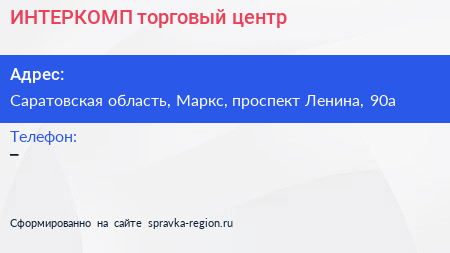 ИНТЕРКОМП, торговый центр по адресу Саратовская область, Маркс, проспект Ленина, 90а в дальнейшем Организация, размещена в следующих категориях: