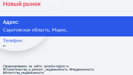 Новый рынок по адресу Саратовская область, Маркс, в дальнейшем Организация, размещена в следующих категориях: