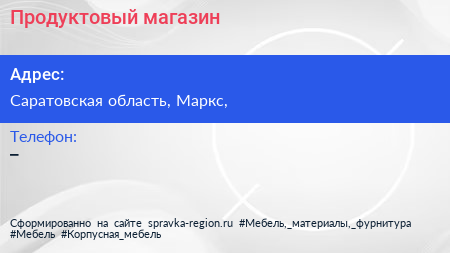 Продуктовый магазин по адресу Саратовская область, Маркс, в дальнейшем Организация, размещена в следующих категориях:
