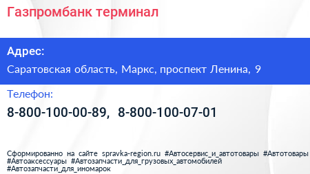 Газпромбанк, терминал по адресу Саратовская область, Маркс, проспект Ленина, 9 в дальнейшем Организация, размещена в следующих категориях: