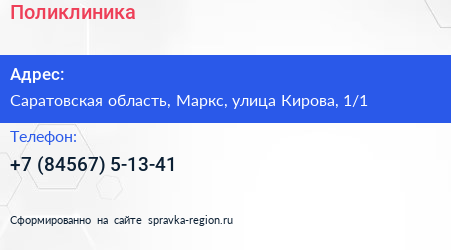 Адрес: Саратовская область, Маркс, улица Кирова, 1/1