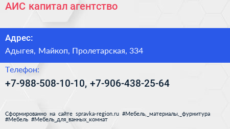АИС капитал, агентство по адресу Адыгея, Майкоп, Пролетарская, 334 в дальнейшем Организация, размещена в следующих категориях: