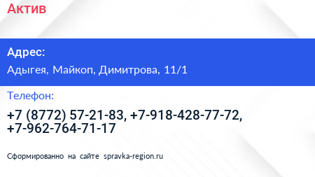 Актив по адресу Адыгея, Майкоп, Димитрова, 11/1 в дальнейшем Организация, размещена в следующих категориях: