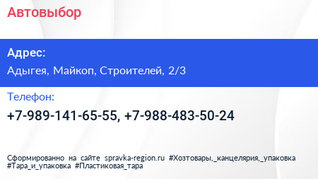 Автовыбор по адресу Адыгея, Майкоп, Строителей, 2/3 в дальнейшем Организация, размещена в следующих категориях: