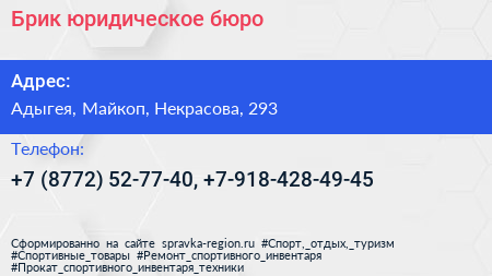Брик, юридическое бюро по адресу Адыгея, Майкоп, Некрасова, 293 в дальнейшем Организация, размещена в следующих категориях: