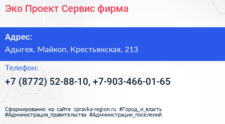 Эко-Проект-Сервис, фирма по адресу Адыгея, Майкоп, Крестьянская, 213 в дальнейшем Организация, размещена в следующих категориях: