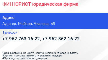 ФИН ЮРИСТ, юридическая фирма по адресу Адыгея, Майкоп, Чкалова, 65 в дальнейшем Организация, размещена в следующих категориях:
