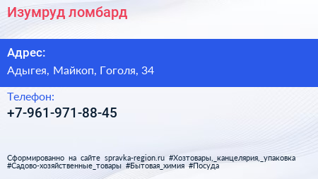 Изумруд, ломбард по адресу Адыгея, Майкоп, Гоголя, 34 в дальнейшем Организация, размещена в следующих категориях: