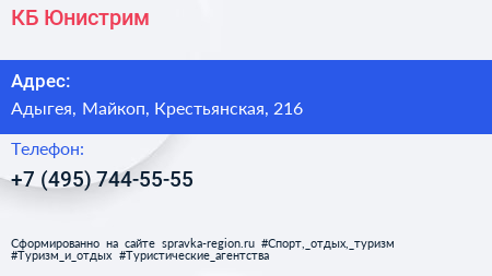 КБ Юнистрим по адресу Адыгея, Майкоп, Крестьянская, 216 в дальнейшем Организация, размещена в следующих категориях: