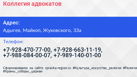 Коллегия адвокатов по адресу Адыгея, Майкоп, Жуковского, 33а в дальнейшем Организация, размещена в следующих категориях: