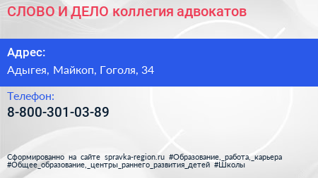 СЛОВО И ДЕЛО, коллегия адвокатов по адресу Адыгея, Майкоп, Гоголя, 34 в дальнейшем Организация, размещена в следующих категориях: