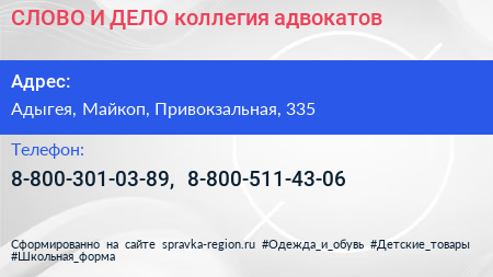 СЛОВО И ДЕЛО, коллегия адвокатов по адресу Адыгея, Майкоп, Привокзальная, 335 в дальнейшем Организация, размещена в следующих категориях:
