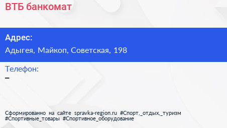 ВТБ, банкомат по адресу Адыгея, Майкоп, Советская, 198 в дальнейшем Организация, размещена в следующих категориях: