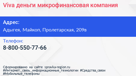 Viva деньги, микрофинансовая компания по адресу Адыгея, Майкоп, Пролетарская, 209в в дальнейшем Организация, размещена в следующих категориях:
