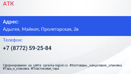 АТК по адресу Адыгея, Майкоп, Пролетарская, 2в в дальнейшем Организация, размещена в следующих категориях: