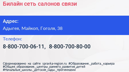 Билайн, сеть салонов связи по адресу Адыгея, Майкоп, Гоголя, 38 в дальнейшем Организация, размещена в следующих категориях: