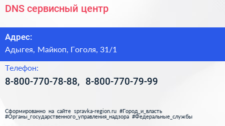 DNS, сервисный центр по адресу Адыгея, Майкоп, Гоголя, 31/1 в дальнейшем Организация, размещена в следующих категориях: