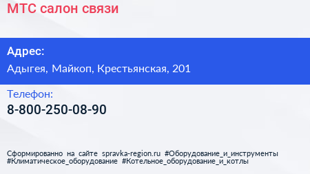 МТС, салон связи по адресу Адыгея, Майкоп, Крестьянская, 201 в дальнейшем Организация, размещена в следующих категориях: