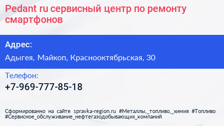 Pedant.ru, сервисный центр по ремонту смартфонов по адресу Адыгея, Майкоп, Краснооктябрьская, 30 в дальнейшем Организация, размещена в следующих категориях: