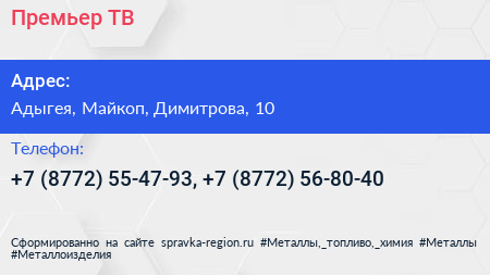Премьер ТВ по адресу Адыгея, Майкоп, Димитрова, 10 в дальнейшем Организация, размещена в следующих категориях: