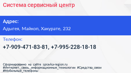 Система, сервисный центр по адресу Адыгея, Майкоп, Хакурате, 232 в дальнейшем Организация, размещена в следующих категориях:
