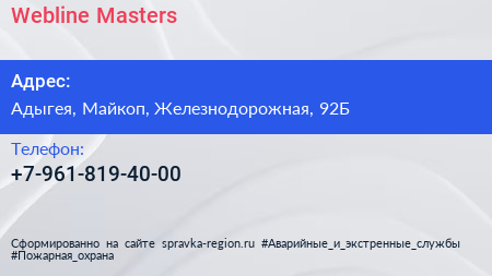 Webline Masters по адресу Адыгея, Майкоп, Железнодорожная, 92Б в дальнейшем Организация, размещена в следующих категориях: