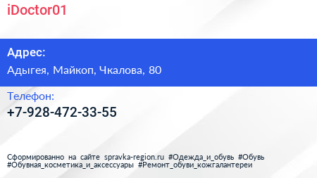 iDoctor01 по адресу Адыгея, Майкоп, Чкалова, 80 в дальнейшем Организация, размещена в следующих категориях: