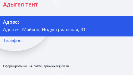 Адыгея тент по адресу Адыгея, Майкоп, Индустриальная, 31 в дальнейшем Организация, размещена в следующих категориях: