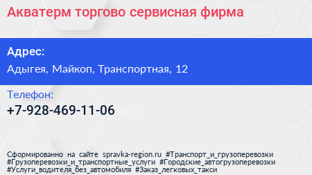 Акватерм, торгово-сервисная фирма по адресу Адыгея, Майкоп, Транспортная, 12 в дальнейшем Организация, размещена в следующих категориях: