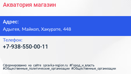Акватория, магазин по адресу Адыгея, Майкоп, Хакурате, 448 в дальнейшем Организация, размещена в следующих категориях: