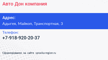 Авто-Дон, компания по адресу Адыгея, Майкоп, Транспортная, 3 в дальнейшем Организация, размещена в следующих категориях: