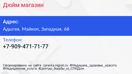 Дюйм, магазин по адресу Адыгея, Майкоп, Западная, 68 в дальнейшем Организация, размещена в следующих категориях: