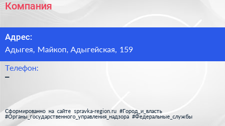 Компания по адресу Адыгея, Майкоп, Адыгейская, 159 в дальнейшем Организация, размещена в следующих категориях: