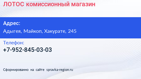 ЛОТОС, комиссионный магазин по адресу Адыгея, Майкоп, Хакурате, 245 в дальнейшем Организация, размещена в следующих категориях: