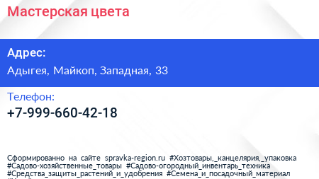 Мастерская цвета по адресу Адыгея, Майкоп, Западная, 33 в дальнейшем Организация, размещена в следующих категориях:
