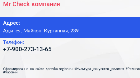 Mr.Check, компания по адресу Адыгея, Майкоп, Курганная, 239 в дальнейшем Организация, размещена в следующих категориях: