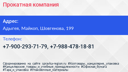 Прокатная компания по адресу Адыгея, Майкоп, Шовгенова, 199 в дальнейшем Организация, размещена в следующих категориях: