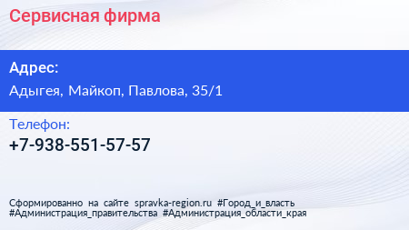 Сервисная фирма по адресу Адыгея, Майкоп, Павлова, 35/1 в дальнейшем Организация, размещена в следующих категориях: