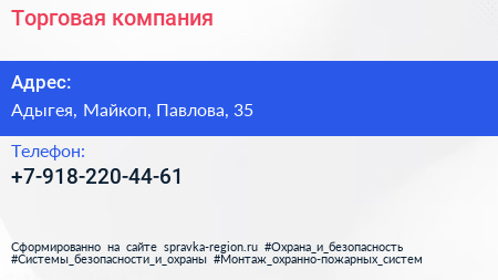 Торговая компания по адресу Адыгея, Майкоп, Павлова, 35 в дальнейшем Организация, размещена в следующих категориях: