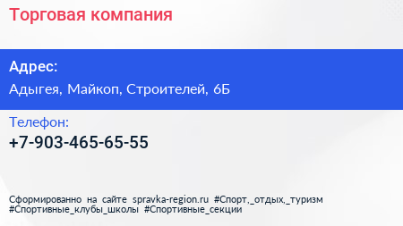 Торговая компания по адресу Адыгея, Майкоп, Строителей, 6Б в дальнейшем Организация, размещена в следующих категориях: