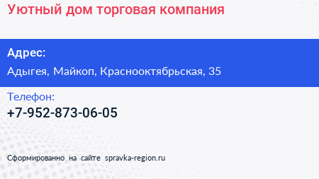 Уютный дом, торговая компания по адресу Адыгея, Майкоп, Краснооктябрьская, 35 в дальнейшем Организация, размещена в следующих категориях: