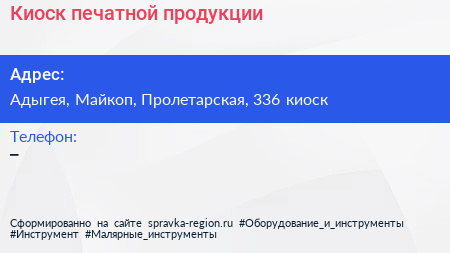 Киоск печатной продукции по адресу Адыгея, Майкоп, Пролетарская, 336 киоск в дальнейшем Организация, размещена в следующих категориях: