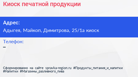 Киоск печатной продукции по адресу Адыгея, Майкоп, Димитрова, 25/1а киоск в дальнейшем Организация, размещена в следующих категориях: